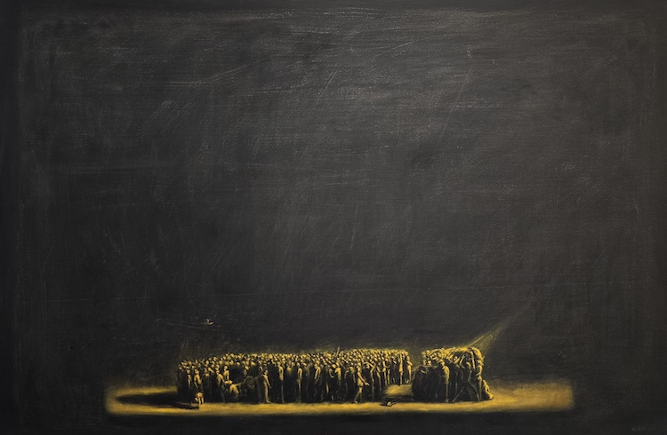 The empty space in my paintings is very vast, yet it remains empty, possibly devoid even of air. The life of a migrant in a country like Iran or Pakistan, as I have experienced, resembles this black void—it lacks anything substantial. There is no such thing as a bright future; we may strive for many things, but at any moment, everything we have achieved could be taken away from us. Many of us lack even an identity. We don’t belong anywhere. Yet my subjects struggle in this expansive and dark space, trying to survive, trying to exist. It seems that a glimmer of hope remains, perhaps that one day everything will be set right. This hope, however small, can be a powerful force, driving us to persist despite the overwhelming darkness and uncertainty. Even in the toughest circumstances, the belief that change is possible can inspire resilience and a sense of purpose.