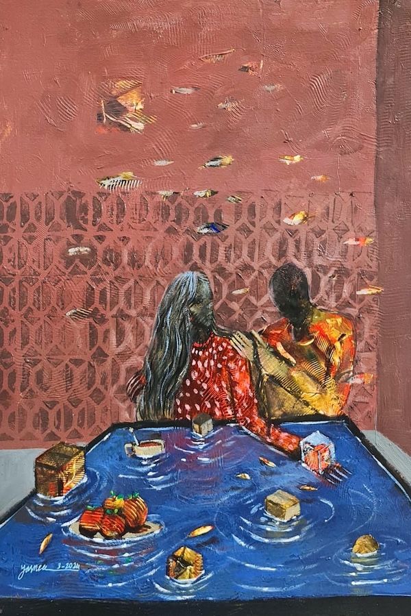 Yasmeen Abdalah Ahmed Saeed is a 2014 graduate of the University of Sudan in Khartoum where she received a BA in painting. Her works have since been exhibited in Europe, Sudan, and across the Middle East. In 2025 she was among sixty international artists invited to Spain for The Pontevedra Biennial.
