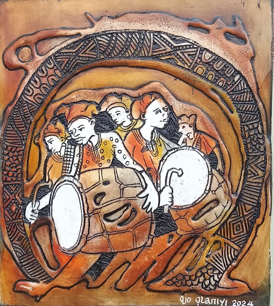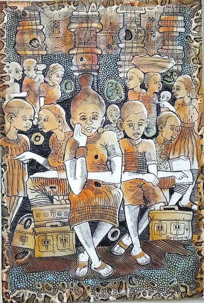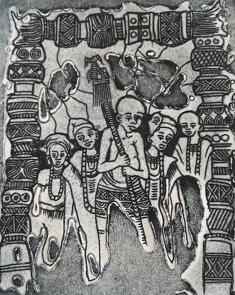 Ojo Olaniyi graduated from the Ekiti State University in Ado Ekiti Nigeria where he studied under the master printmaker Bruce Onobrakpeya. He has taught in the renowned Harmattan Workshop and has exhibited widely in both Africa and continental Europe.